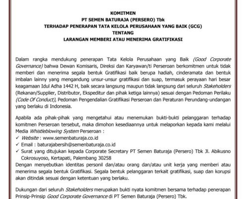 Laporkan perbuatan berindikasi pelanggaran yang terjadi di lingkungan PT Semen Baturaja (Persero) Tbk.