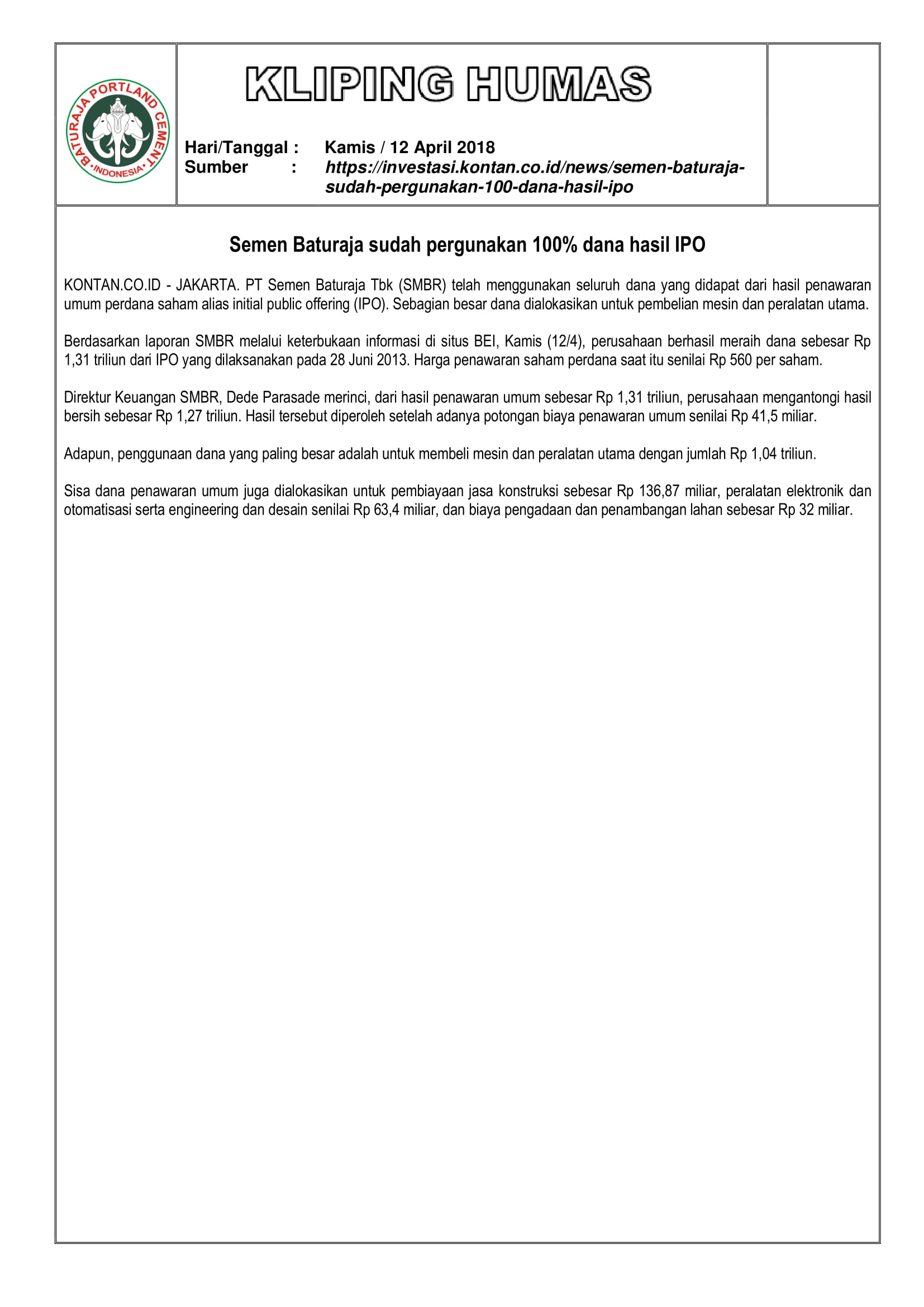 https://semenbaturaja.co.id/wp-content/uploads/2026/01/LOGO-SMBR-BARU-Persero.png00Admin SMBRhttps://semenbaturaja.co.id/wp-content/uploads/2026/01/LOGO-SMBR-BARU-Persero.pngAdmin SMBR2018-04-17 14:08:172018-04-17 14:08:17SEMEN BATURAJA SUDAH PERGUNAKAN 100% DANA HASIL IPO