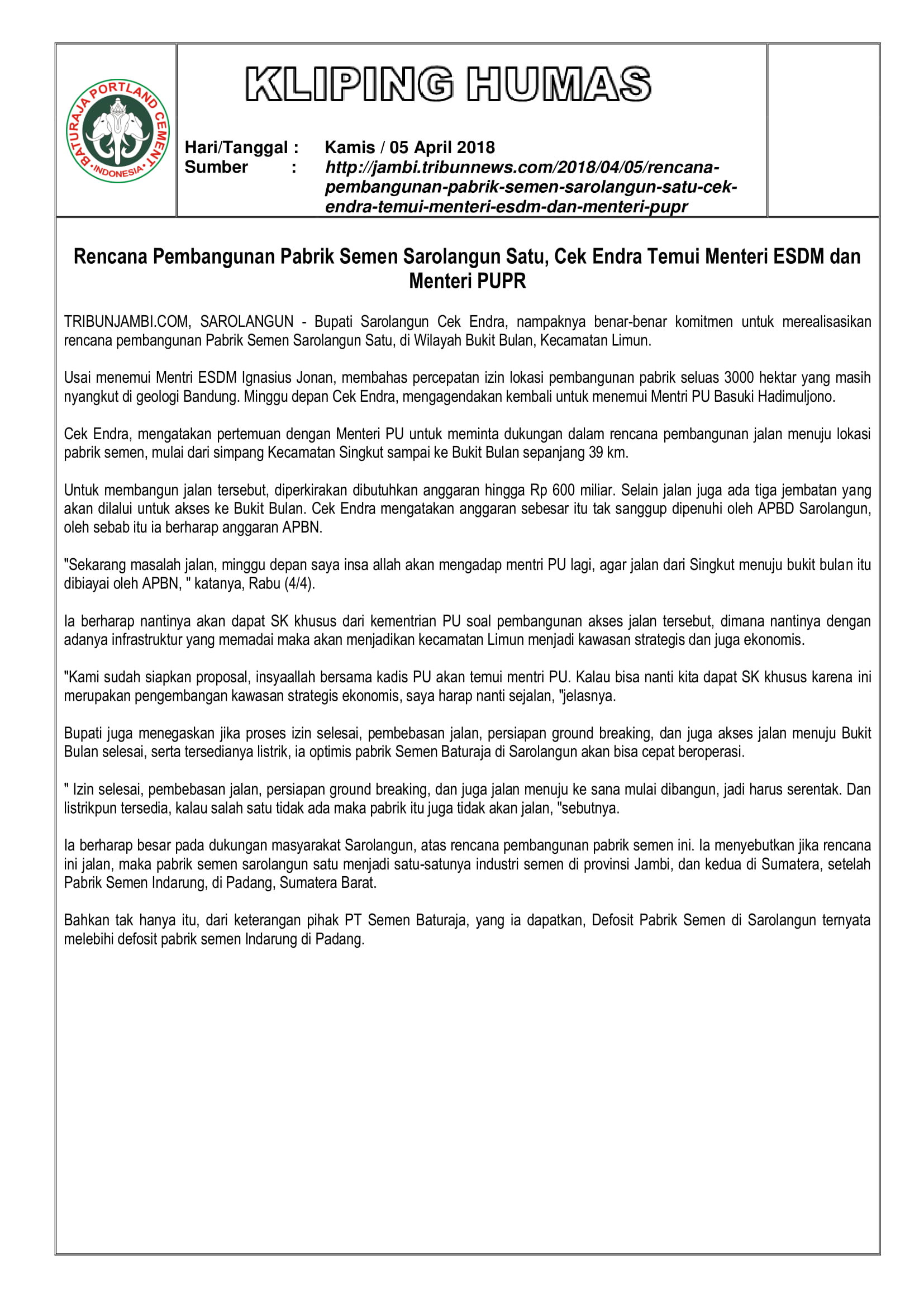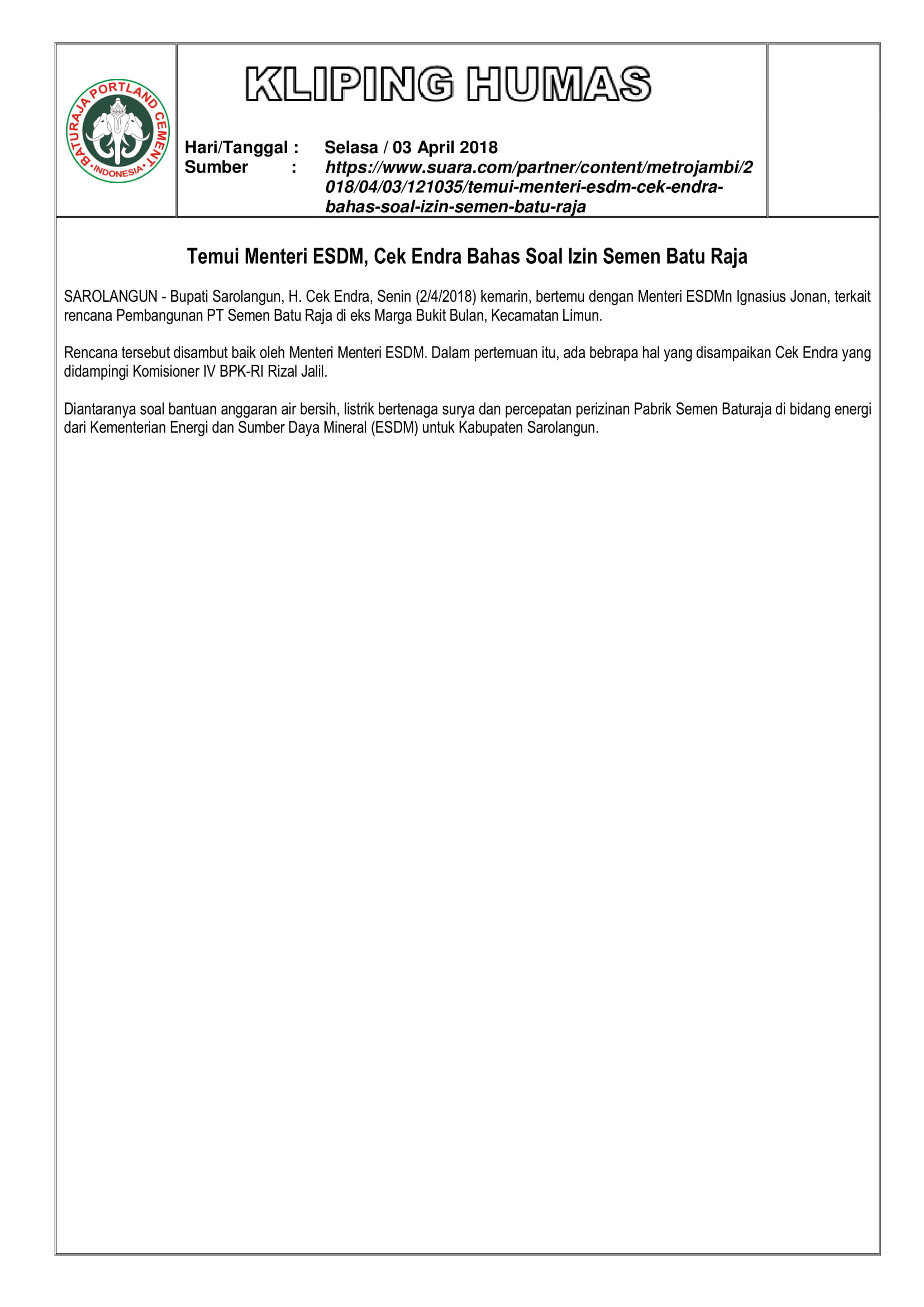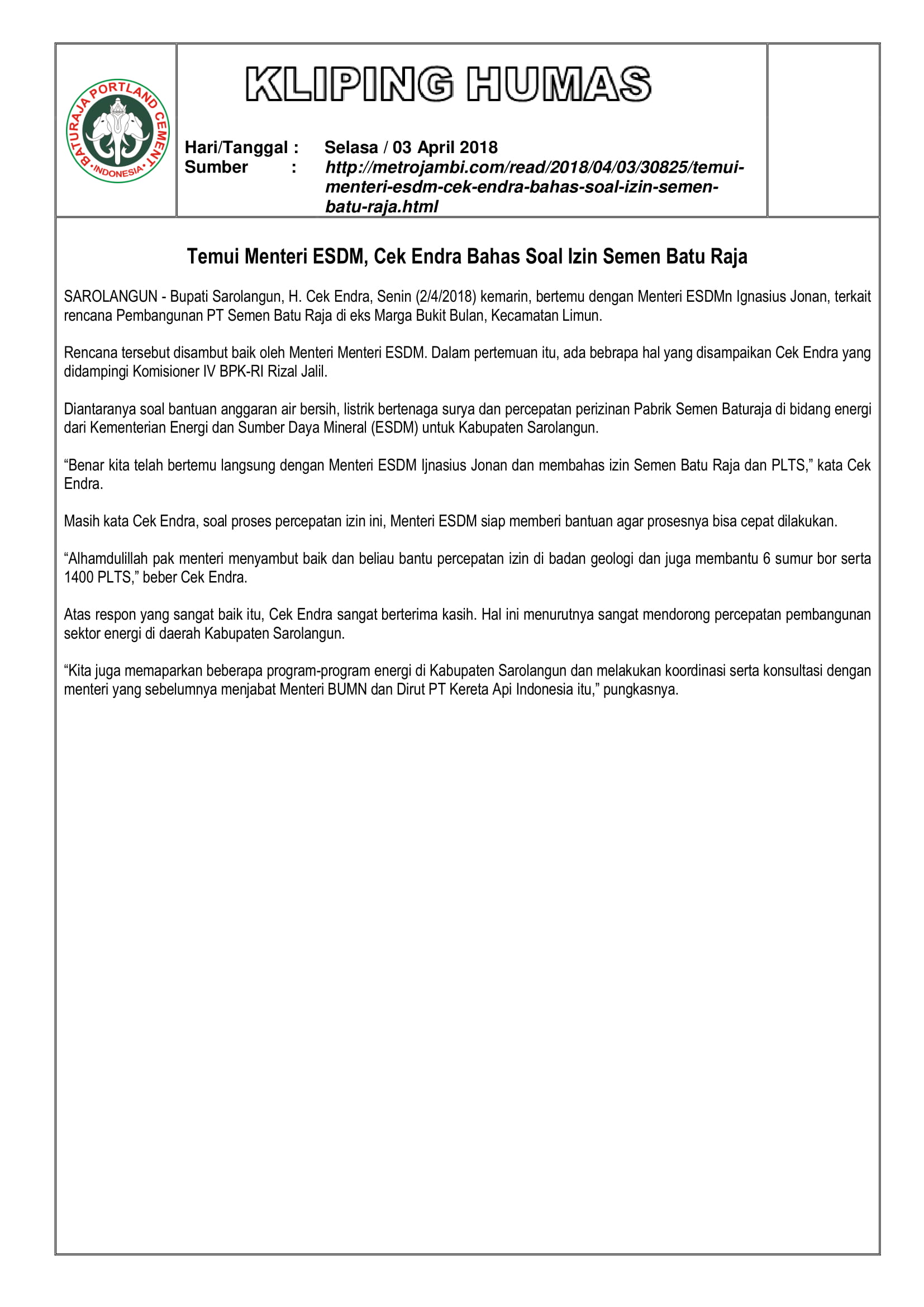 https://semenbaturaja.co.id/wp-content/uploads/2026/01/LOGO-SMBR-BARU-Persero.png00Admin SMBRhttps://semenbaturaja.co.id/wp-content/uploads/2026/01/LOGO-SMBR-BARU-Persero.pngAdmin SMBR2018-04-17 14:16:242018-04-17 14:16:24RENCANA PEMBANGUNAN PABRIK SEMEN SAROLANGUN SATU, CEK ENDRA TEMUI MENTERI ESDM DAN MENTERI PUPR