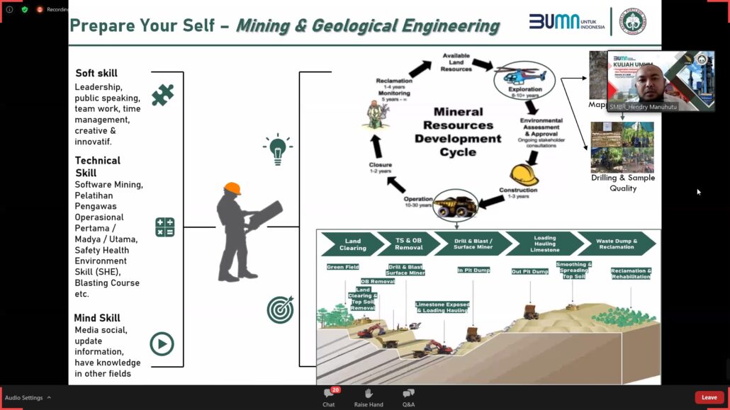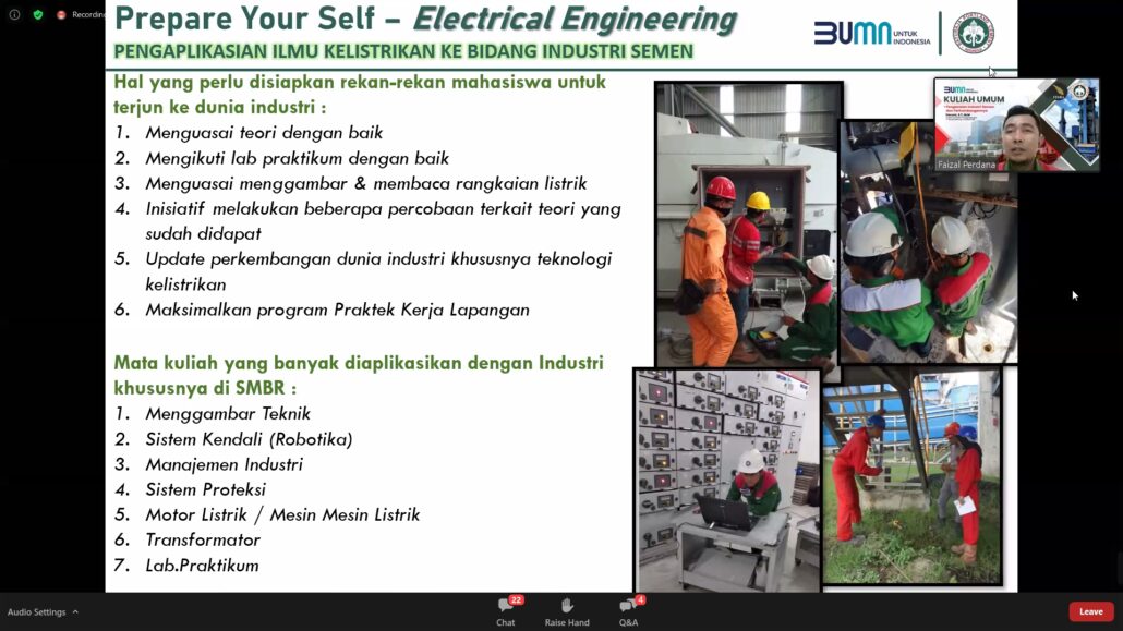 PALEMBANG – The General & Human Resources Director of Semen Baturaja, Amrullah, had acted as the main speaker of Public Relation Web Conference with the theme of “Be Creative and Develop Your Skill to Get Your Dream Job”.