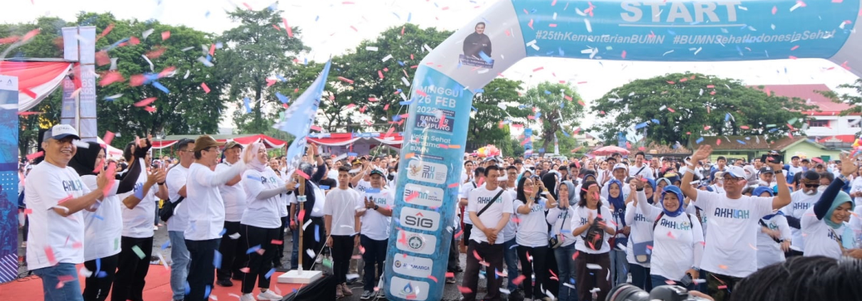 Di bawah arahan Menteri BUMN Erick Thohir, Kementerian BUMN menjalankan program “BUMN Untuk Indonesia” guna mendorong BUMN memberikan sumbangan terbaik bagi negeri dan rakyat. Sebagai bagian dari BUMN, PT Semen Baturaja Tbk (SMBR) yang merupakan anak usaha PT Semen Indonesia (Persero) Tbk (SIG) turut mendukung pelaksanaan Jalan Sehat Bersama BUMN di Kota Bandar Lampung yang melibatkan 2.000 peserta yang berasal dari masyarakat umum, karyawan, serta keluarga besar BUMN yang berada di Bandar Lampung dan sekitarnya. Jalan Sehat Bersama BUMN ini digelar pada Minggu (26/02) di Lapangan Saburai, Kota Bandar Lampung. Jalan Sehat Bersama BUMN ini merupakan hasil kolaborasi antara SMBR dengan PT Jasa Marga (Persero) Tbk dan Perum Jasa Tirta II.