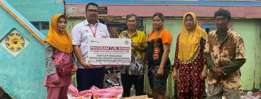 PALEMBANG – PT Semen Baturaja (Persero) Tbk (SMBR) through the SOE TJSL Program distributed assistance in the form of cash and basic necessities to fire victims on Jl. Aibtu A Wahab Lrg. Suka Damai I RT.08 RW.02 Tuan Kentang Village, Jakabaring District, Palembang City, on Monday (19/09).