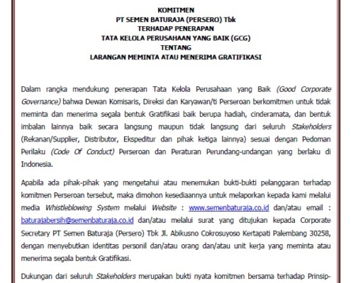 Report acts with indications of violations that occur within PT Semen Baturaja (Persero) Tbk.