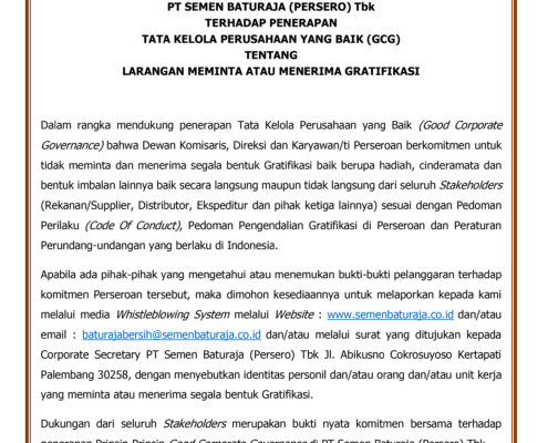 Report acts with indications of violations that occur within PT Semen Baturaja (Persero) Tbk.