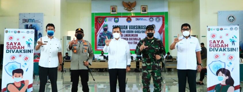 BATURAJA – Kodim 0403 OKU in collaboration with PT Semen Baturaja (Persero) Tbk held a “Vaccine Raid” held at Wisma Ganesha Baturaja Factory on Wednesday (04/07).