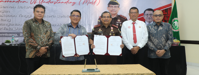 PALEMBANG – PT Semen Baturaja Tbk (SMBR) as a subsidiary of PT Semen Indonesia (Persero) Tbk (SIG) and the South Sumatra High Prosecutor’s Office (Kejati Sumsel) extended their cooperation in the field of Civil and State Administrative Law (TUN). The extension of this collaboration was marked by the signing of an agreement between SMBR President Director Suherman Yahya and Head of the South Sumatra High Prosecutor’s Office Yulianto, at the Semen Baturaja Office in Palembang City on Monday (10/21).