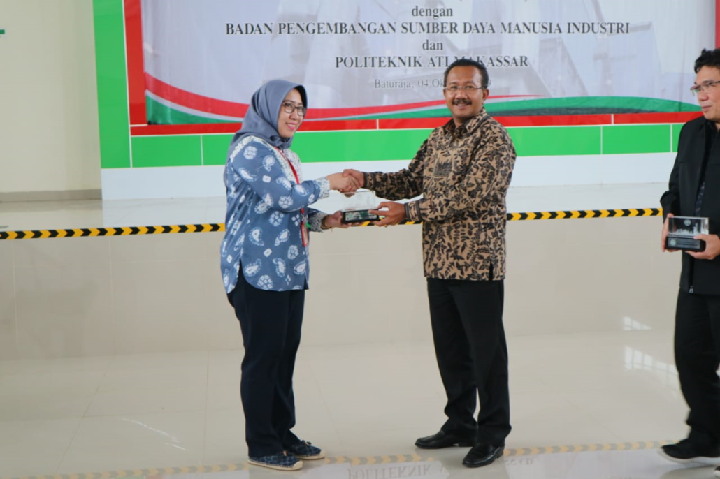 The grand opening of the ceremony was attended and presented by SMBR Vice President of Human Resource, Fitria Margaretha, along with her colleagues and also by the Director of IEA Polytechnic of Makassar, Amrin Rapi. The awarding of the Diploma 1 degree certificate was directly carried out by the Board for the Development of Industrial Resources and IEA Polytechnic of Makassar to SMBR Vice President of Human Resource.