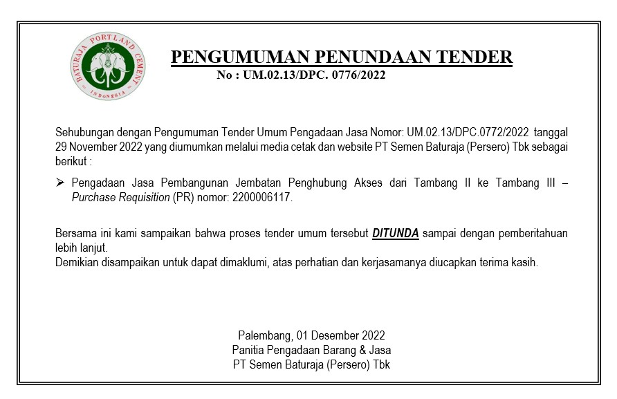 Report acts with indications of violations that occur within PT Semen Baturaja (Persero) Tbk.