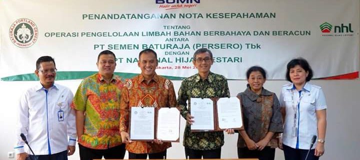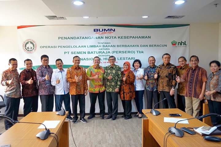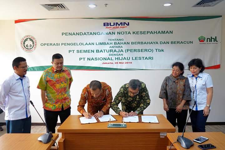 PT Semen Baturaja (Persero) Tbk (SMBR) bekerja sama dengan PT Nasional Hijau Lestari (NHL), sebuah perusahaan yang didirikan Badan Usaha Milik Negara (BUMN) Holding Pertambangan untuk mengelola limbah Bahan Berbahaya dan Beracun (B3). Penandatanganan kesepakatan kerja sama dilakukan langsung oleh Direktur Utama (Dirut) SMBR, Rahmad Pribadi, dengan Pelaksana Tugas (Plt.) Dirut NHL, Agus Yulianto, di Kantor Kementerian BUMN, Jalan Medan Merdeka Selatan, Senin, 28 Mei 2018.