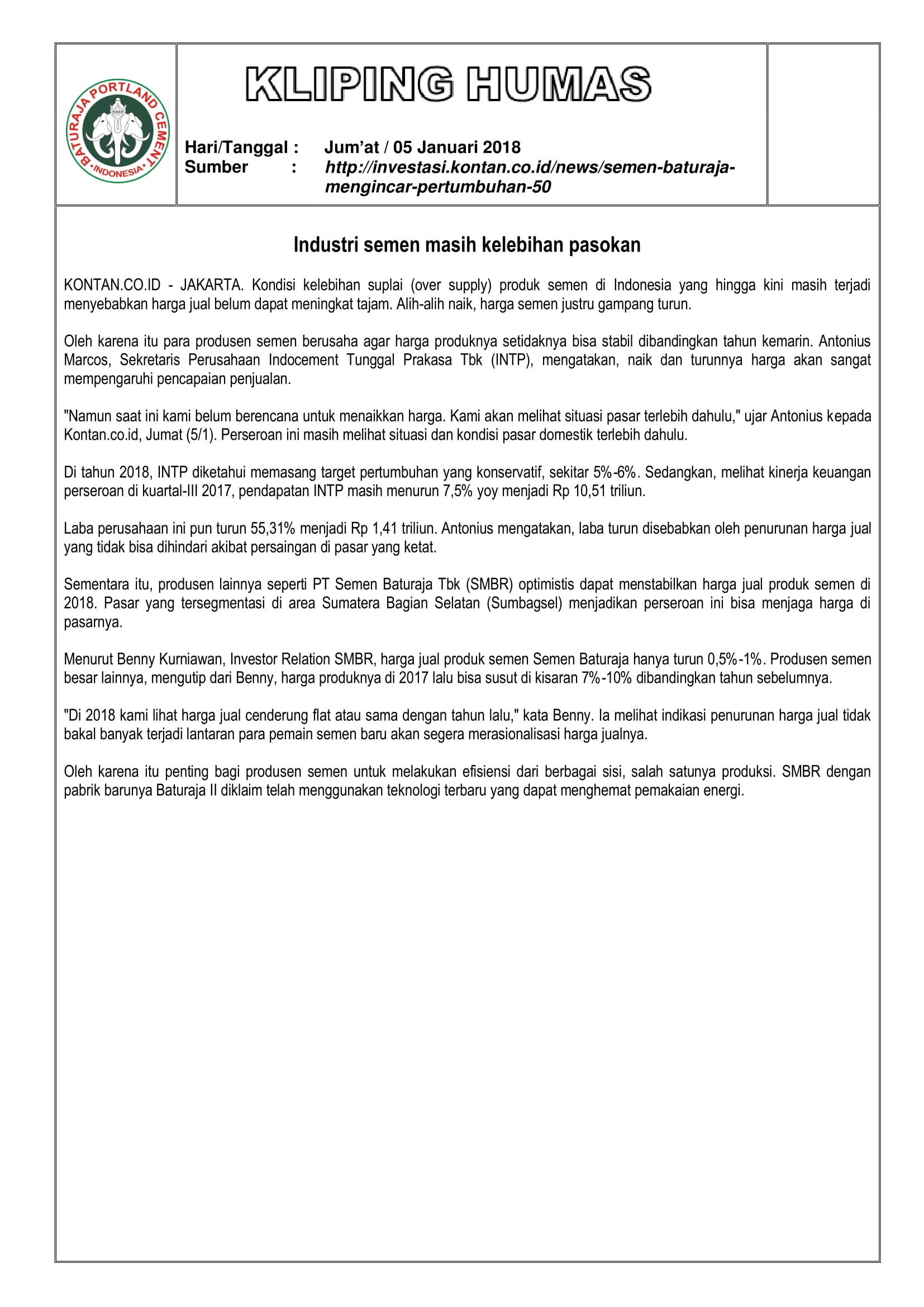 Kliping Media : Industri Semen Masih Kelebihan Pasokan