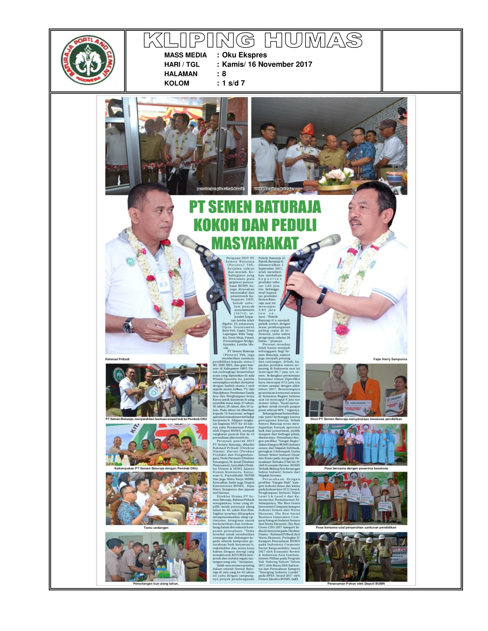 Kliping Media : PT Semen Baturaja (Persero) Tbk Kokoh dan Peduli Masyarakat
