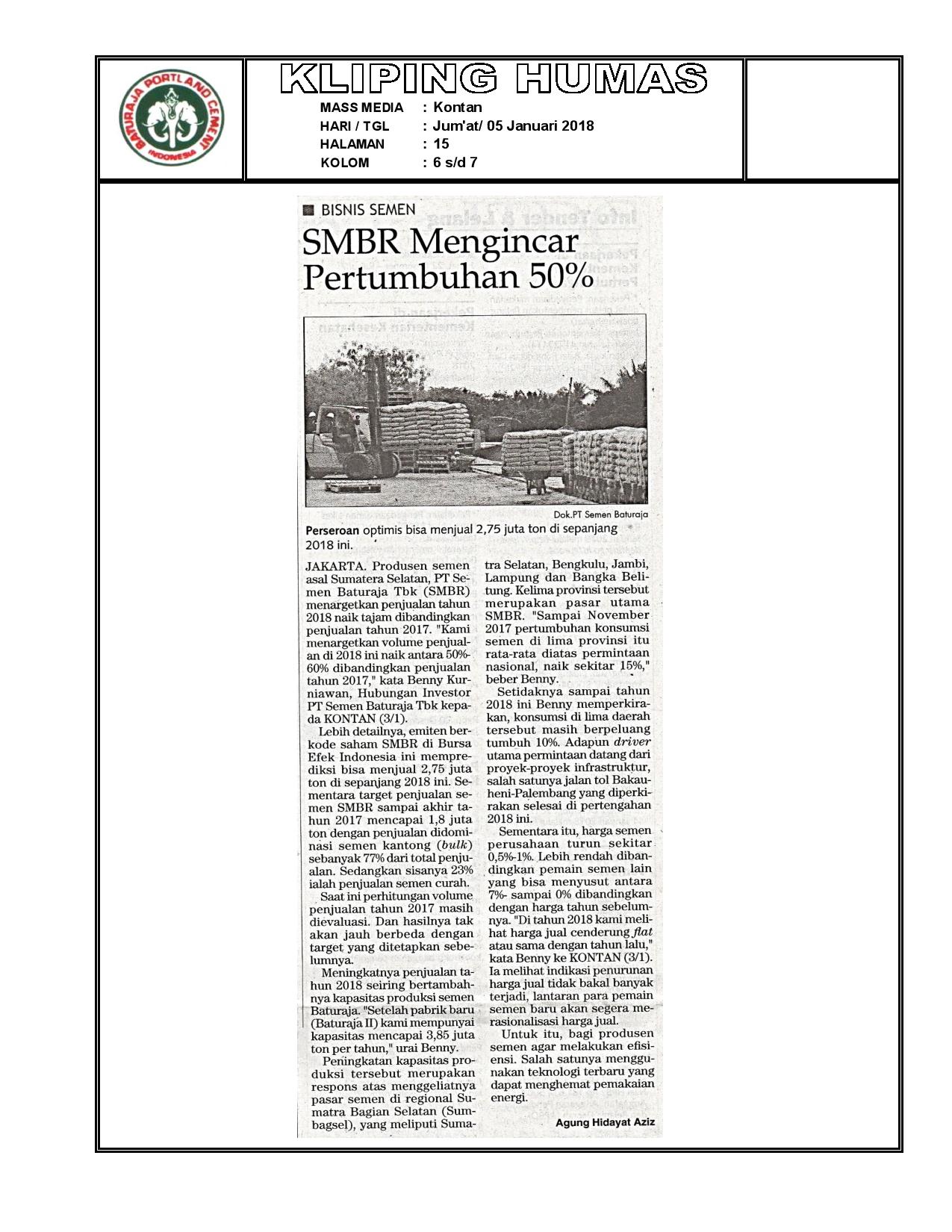 Kliping Media : Semen Baturaja Mengincar Pertumbuhan 50%
