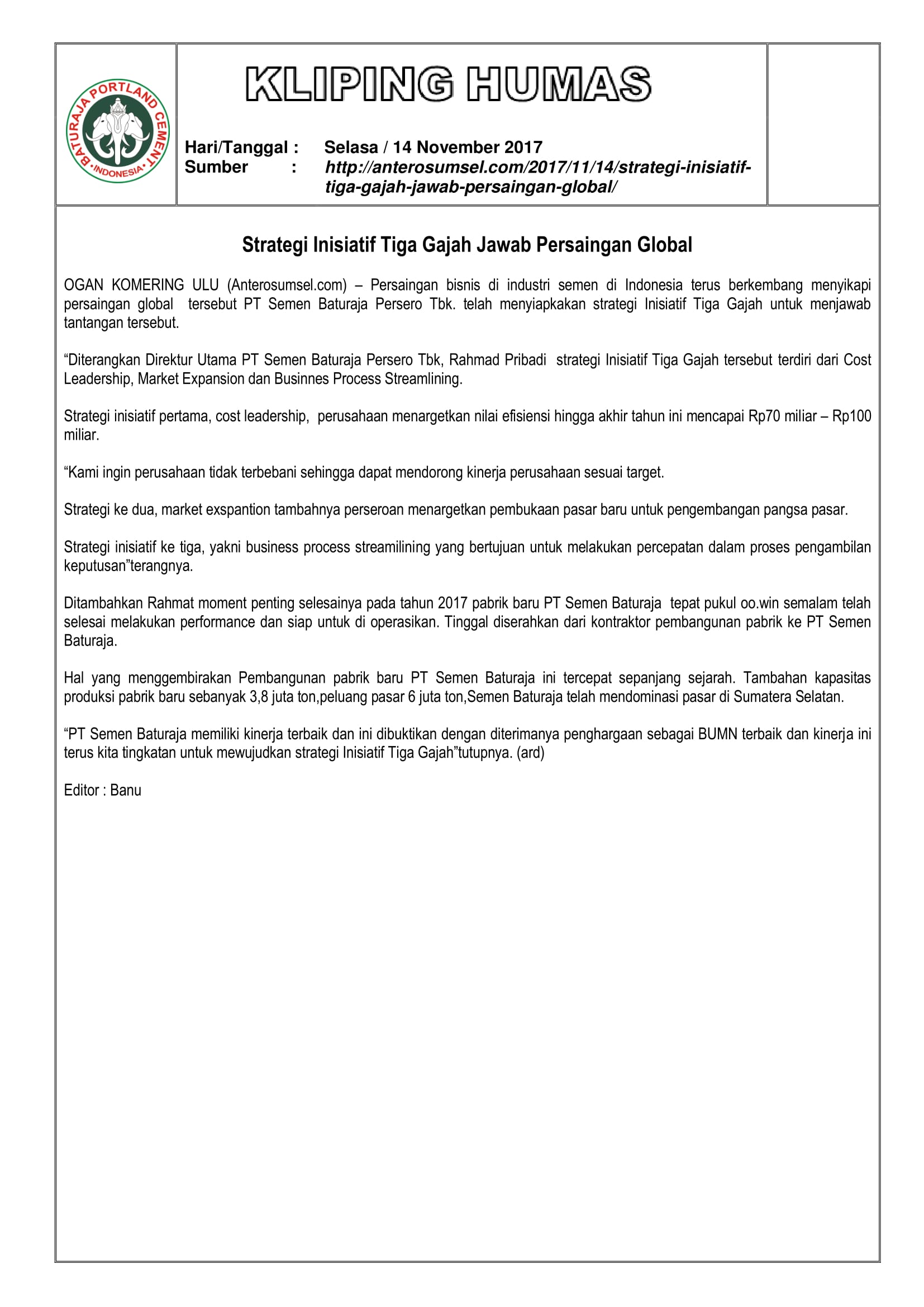 Kliping Media : Strategi Inisiatif Tiga Gajah Jawab Persaingan Global