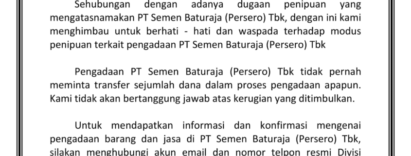 Laporkan perbuatan berindikasi pelanggaran yang terjadi di lingkungan PT Semen Baturaja (Persero) Tbk.