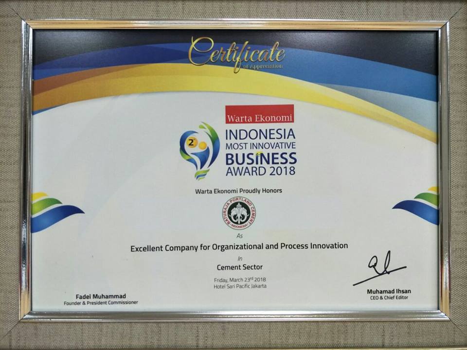 Jakarta, Berlangsung di Ballroom Hotel Sari Pan Pacific Jakarta pada hari Jum’at (23/03), PT Semen Baturaja (Persero) Tbk berhasil meraih penghargaan Indonesia Most Innovative Business Award 2018. Warta Ekonomi Intelligent unit menetapkan PT Semen Baturaja (Persero) Tbk sebagai Penerima Penghargaan : Special Mention Indonesia Most Innovative Business Award 2018 untuk Kategori Industri Semen. Penghargaan ini diberikan langsung oleh founder Warta Ekonomi Bapak Fadel Muhhamad kepada Direktur Keuangan PT Semen Baturaja (Persero) Tbk Bapak Dede Parasade yang datang bersama Sekretaris Perusahaan Bapak Ruddy Solang.