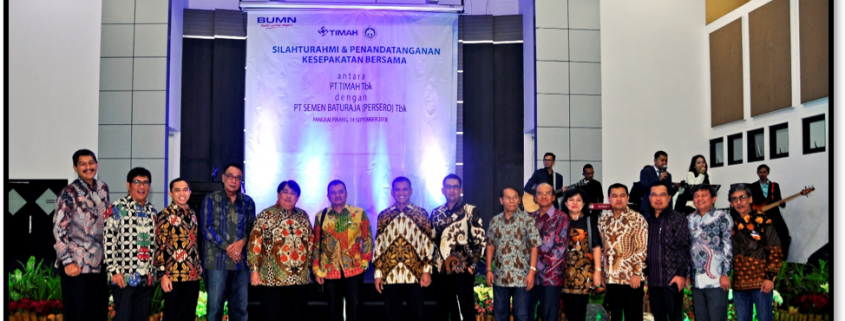 Pangkalpinang, PT Semen Baturaja (Persero) Tbk (SMBR) akan menyuplai kebutuhan semen untuk proyek pembangunan di lingkungan PT Timah Tbk. Kerja sama kedua Badan Usaha Milik Negara (BUMN) tersebut dituangkan dalam dalam Nota Kesepahaman/Memorandum of Understanding (MoU) yang ditandantangani langsung oleh Direktur Utama (Dirut) SMBR, Rahmad Pribadi, dengan Dirut PT Timah Tbk, M Riza Pahlevi Tabrani. Penandatanganan dilakukan di Graha Timah, Bangka, Jumat, 14 September 2018 malam.