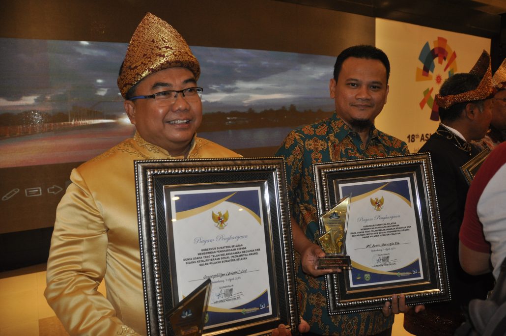 Dijelaskan bahwa SMBR menerima Padmamitra Award 2018 sebagai bentuk penghargaan kepada dunia usaha yang telah melaksanakan kegiatan CSR di bidang kesejahteraan sosial di wilayah Sumatera Selatan. Pada kesempatan yang sama SMBR juga memberikan bantuan CSR berupa 10 lemari pakaian kepada Panti Sosial Gelandangan Orang Terlantar Dinas Sosial Provinsi Sumsel. (Corsec SMBR)