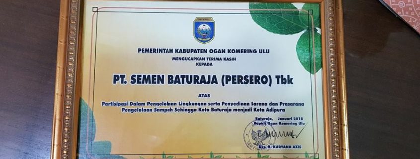 Piagam penghargaan untuk PT Semen Baturaja (Persero) Tbk diserahkan secara langsung oleh Bupati OKU Bapak Kuryana Azis kepada Vice President Operation I Bapak Taufik Ibrahim. Dalam sambutannya, Bupati OKU menyampaikan ucapan terima kasih kepada seluruh perusahaan di OKU atas dukungan, kepedulian dan partisipasi yang begitu besar terhadap peningkatan kebersihan di Kabupaten OKU. Beliau berharap untuk kedepannya, kerjasama dan dukungan yang telah diberikan oleh perusahaan di OKU akan semakin meningkat agar nantinya Kabupaten OKU bisa menjadi percontohan bagi kota dan kabupaten lainnya. (Humas SMBR)