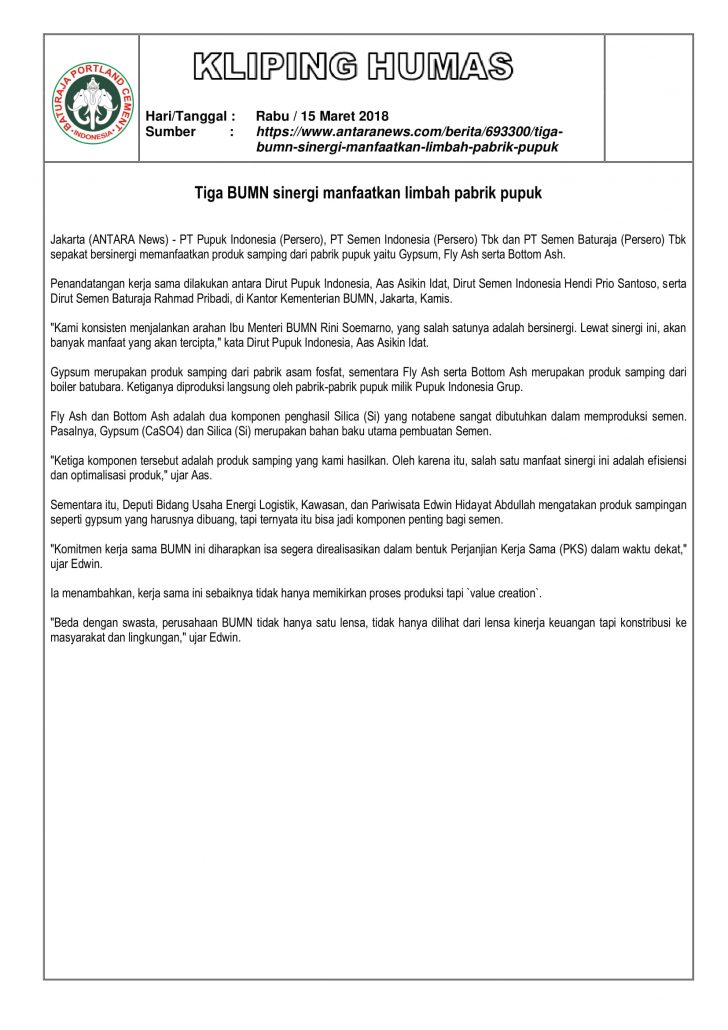 Admin SMBR 2018-05-14 16:17:28 2018-05-14 16:17:28 Tiga BUMN Sinergi Manfaatkan Limbah Pabrik Pupuk
