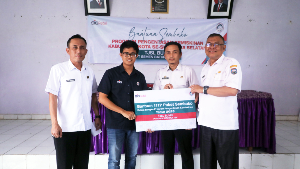 BATURAJA – Sebagai bentuk komitmen dalam mendukung pemerataan ekonomi dan pemberantasan kemiskinan di Provinsi Sumatera Selatan Tahun 2025, PT Semen Baturaja Tbk (SMBR) menyalurkan sebanyak 1.117 bantuan paket sembako kepada Masyarakat yang berada disekitar wilayah operasional SMBR di Baturaja, Kabupaten Ogan Komering Ulu (OKU).
