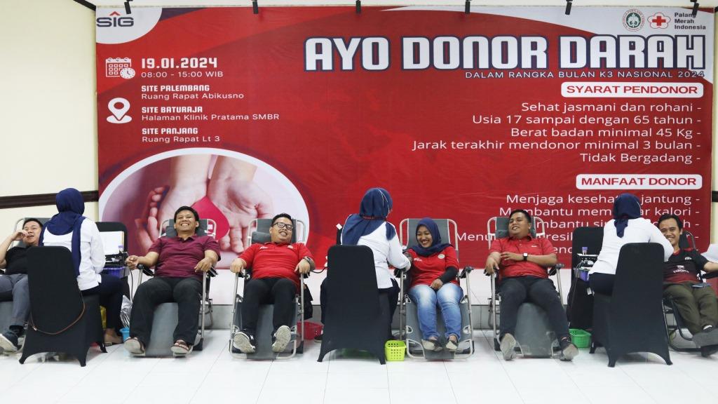PALEMBANG – Dalam rangka memperingati Bulan Keselamatan dan Kesehatan Kerja (K3) Nasional Tahun 2024, PT Semen Baturaja Tbk (SMBR) selaku anak usaha PT Semen Indonesia (Persero) Tbk (SIG) menggandeng Palang Merah Indonesia (PMI) menggelar aksi Donor Darah yang diadakan secara serentak di tiga lokasi site SMBR yaitu Palembang, Baturaja, dan Panjang pada Jumat (19/1).