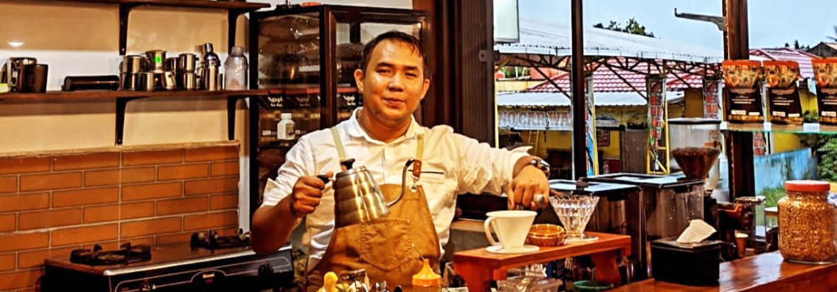 “Tahun 2020 akhirnya saya bisa beli mesin roasting dan mesin giling kopi. Karena banyak yang ingin menikmati kopi langsung di tempat, maka di tahun 2023 saya membuka kafe Ngupi Ku-day di Baturaja. Untuk mengelola kafe, saya dibantu oleh 5 karyawan. Sedangkan pengelolaan kebun kopi dibantu 3 orang. Total karyawan saya saat ini seluruhnya ada 8 orang,” ujar Deni.