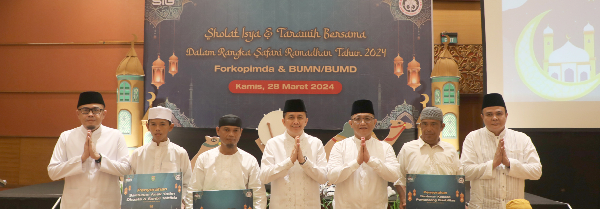 PALEMBANG – PT Semen Baturaja Tbk (SMBR) selaku anak usaha PT Semen Indonesia (Persero) Tbk (SIG) menyalurkan bantuan untuk Penyandang Disabilitas, Anak Yatim, Dhuafa dan Santri Tahfidz serta Peralatan Masjid di sekitar perusahaan. Penyerahan bantuan tersebut bersamaan dengan Kegiatan Pengajian Ramadan 1445 Hijriah SMBR Bersama dengan Pemerintah Provinsi Sumatera Selatan (Pemprov Sumsel) yang berlangsung di Hotel Aryaduta, Kota Palembang, Sumatera Selatan pada Kamis (28/3).