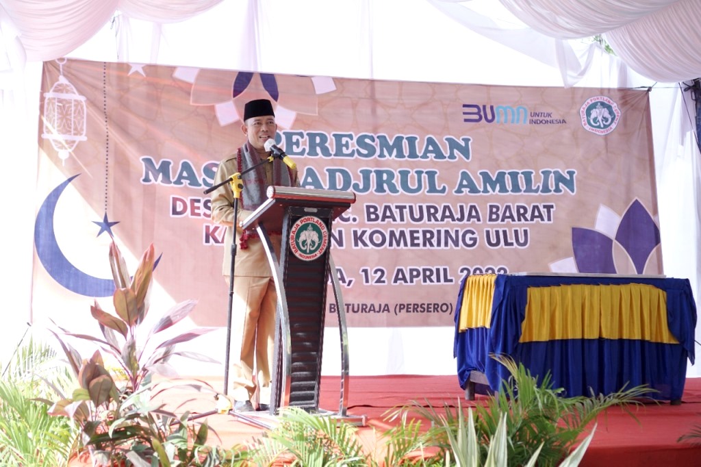 PLH Bupati OKU H. Teddy Meilwansyah., Menyampaikan Masjid Adjrul Amilin pasti sangat membanggakan karena merupakan wujud kepedulian PT. Semen batuaja terhadap kesejahteraan dan kebutuhan sarana ibadah terhadap masyarakat sekitar.