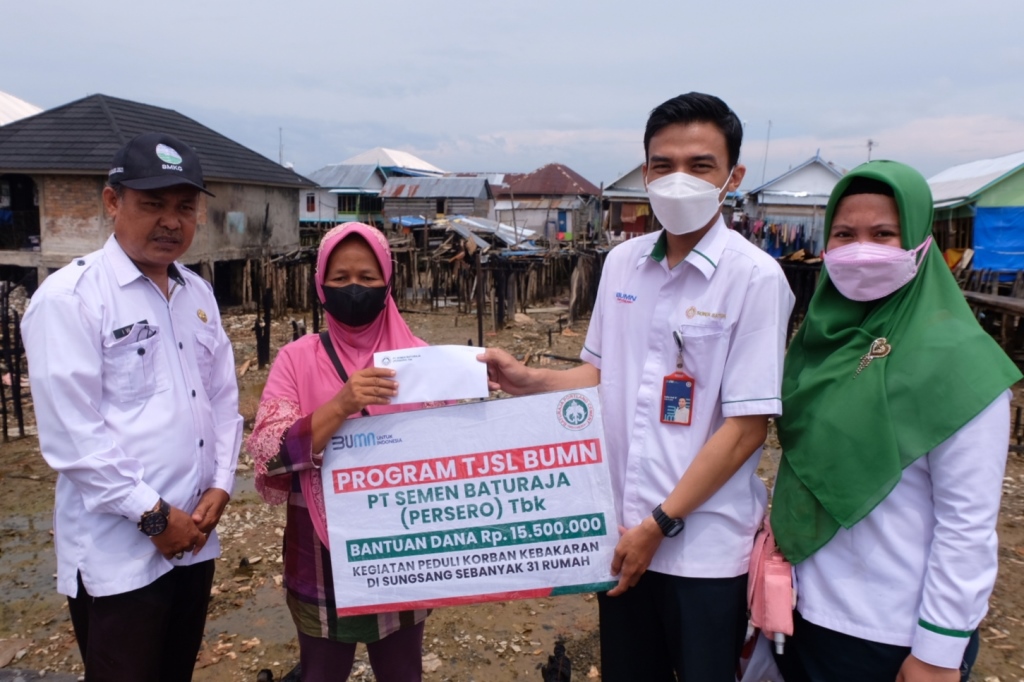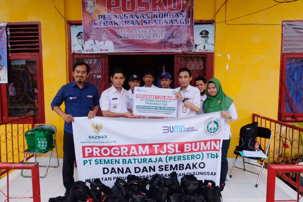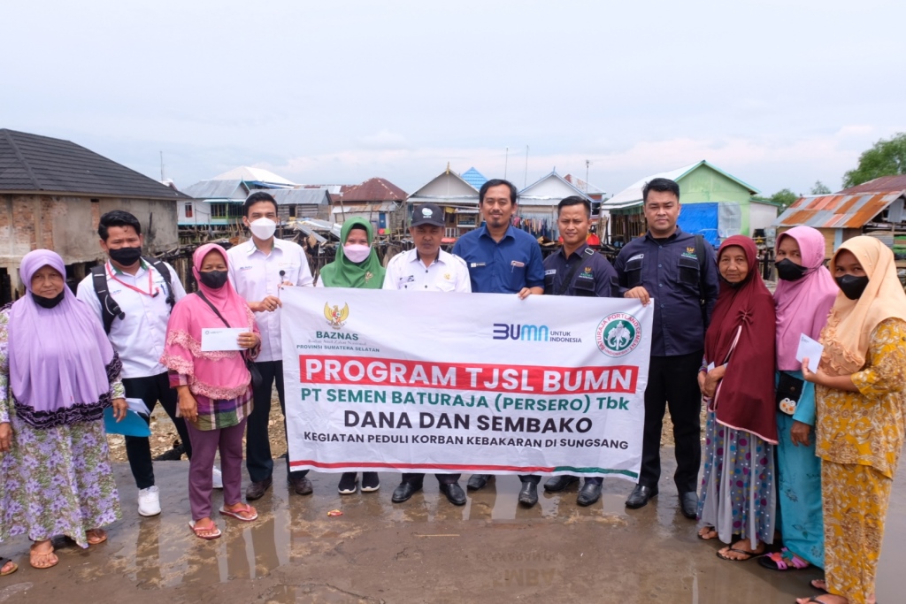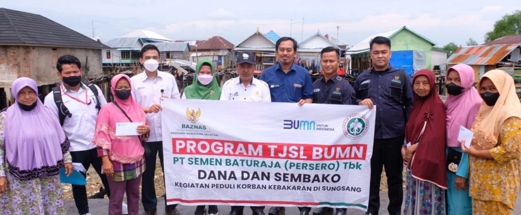 BANYUASIN – Satgas Bencana Peduli PT Semen Baturaja (Persero) Tbk melalui Program TJSL BUMN menyalurkan bantuan berupa Uang dan sembako kepada korban kebakaran di Lorong Kerangga Desa Sungsang Kabupaten Banyuasin pada Rabu (27/04). Penyerahan bantuan ini diberikan secara simbolis oleh Dept. Corporate Social Responsibility (CSR) SMBR dan Baznas Provinsi Sumatera Selatan kepada Camat Banyuasin II Salinan. SMBR memberikan bantuan dana kepada korban kebarakan.