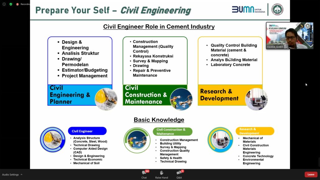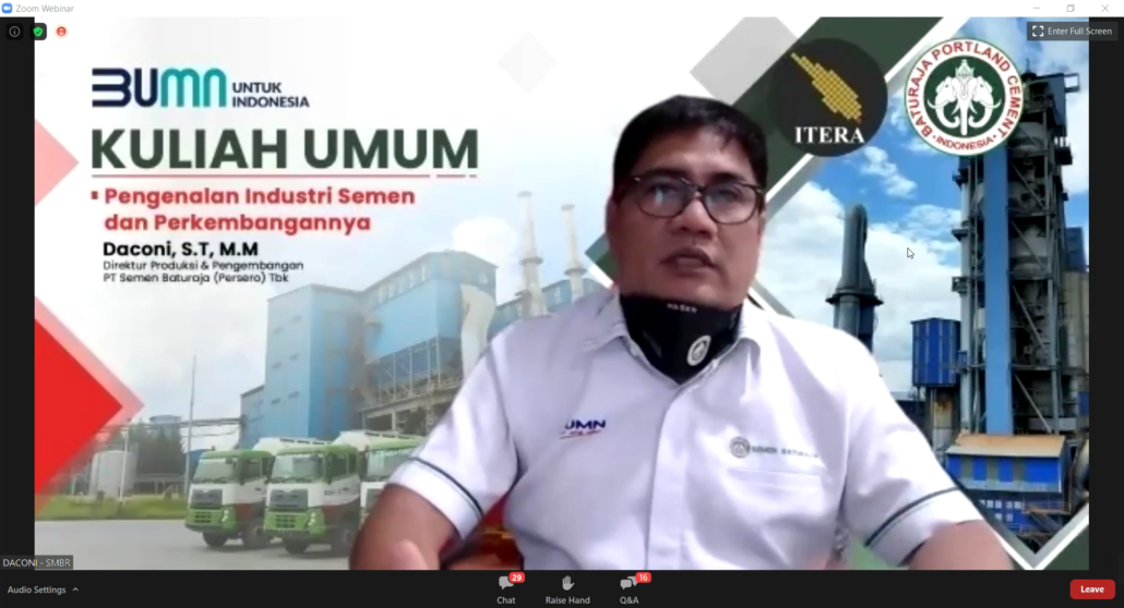 PALEMBANG – The General & Human Resources Director of Semen Baturaja, Amrullah, had acted as the main speaker of Public Relation Web Conference with the theme of “Be Creative and Develop Your Skill to Get Your Dream Job”.