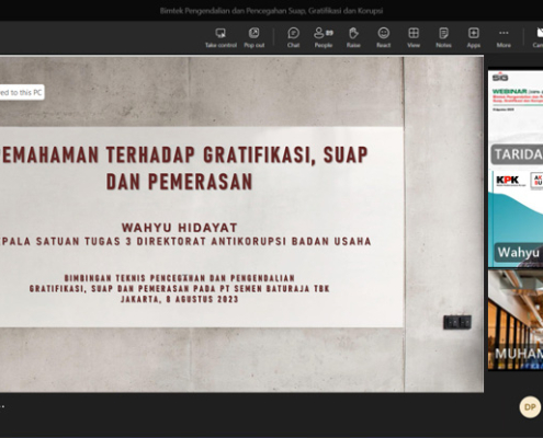 PALEMBANG – PT Semen Baturaja Tbk (SMBR) as a subsidiary of PT Semen Indonesia (Persero) Tbk (SIG) collaborated with the Indonesian Corruption Eradication Commission (KPK) to hold Technical Guidance (Bimtek) Control and Prevention of Gratification, Bribery and Corruption which was held virtually on Tuesday (8/8). This Bimtek invited resource person Wahyu Hidayat as Head of […]