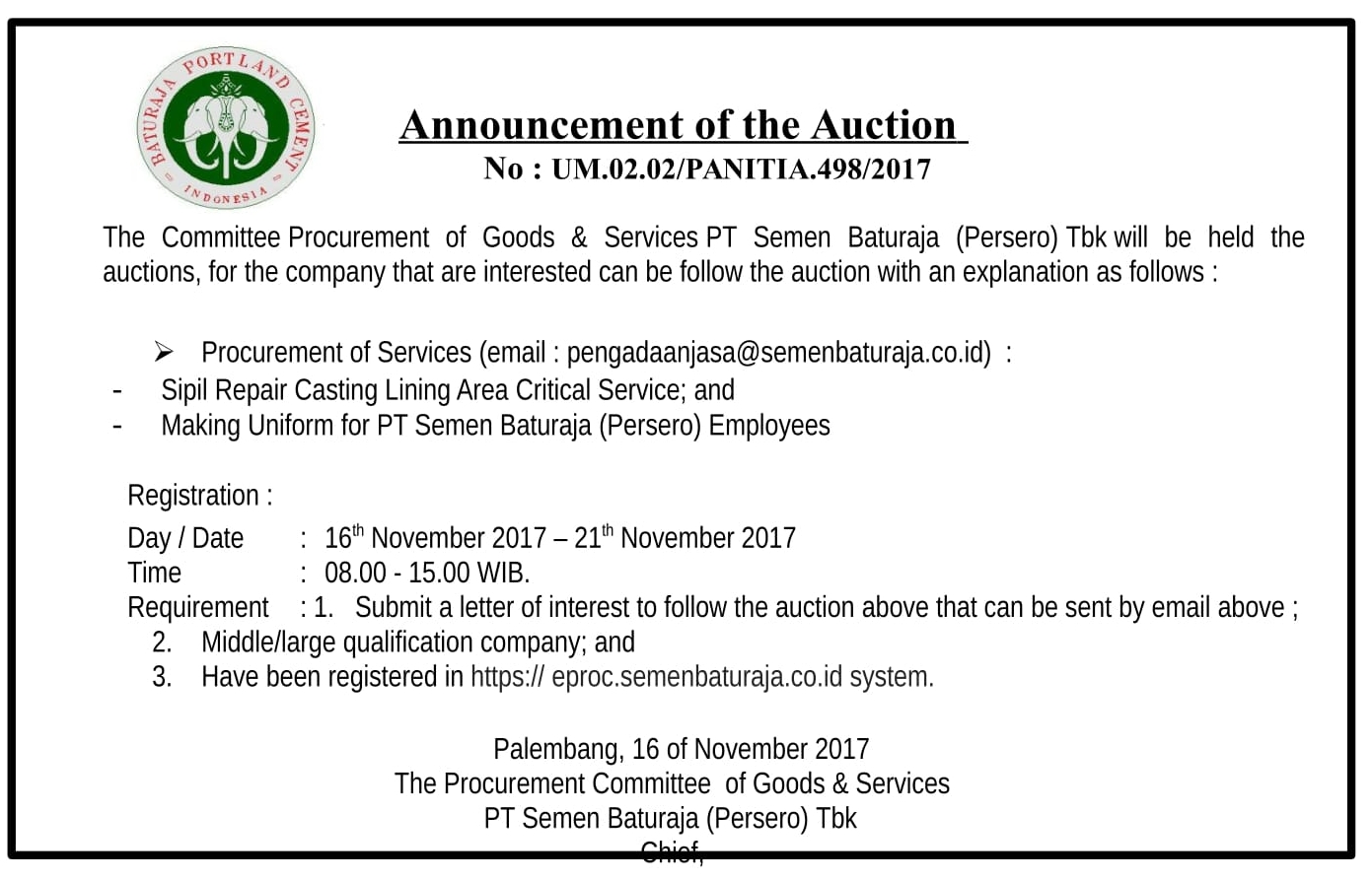 Singapore, Located at the Hall of the Embassy of the Republic of Indonesia to Singapore on Wednesday (23/08), the 4th Indonesian Public Company Award year 2017 from Economic Review in cooperation with Perbanas Institute, IPMI International Business School, Indonesia-Asia Institute and Ideku Group. The event was attended by Corporate Secretary of PT Semen Baturaja (Persero) Tbk, Mr. Rum Hendarmin. On this occasion PT Semen Baturaja (Persero) Tbk was awarded Rank III of Best Public Company for Basic & Chemical Industry Sector, Cement Group.