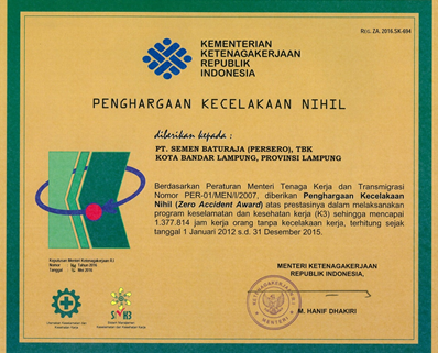 The award given to PT Semen Baturaja (Persero) Tbk, because of the efforts in promoting the efficiency and effectiveness of the production process, technology, environmental management waste, water and energy, industrial quality management in its production. With this pattern, it is expected the company able to align the construction industry with the preservation of the environment and can provide benefits to the society.