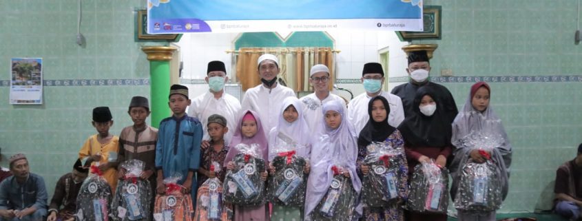- West Baturaja Subdistrict, located at the Ar Ruhamah Mosque in the Air Gading area on Saturday, April 16, 2022, SMBR provided assistance for underprivileged children as many as 16 parcels.