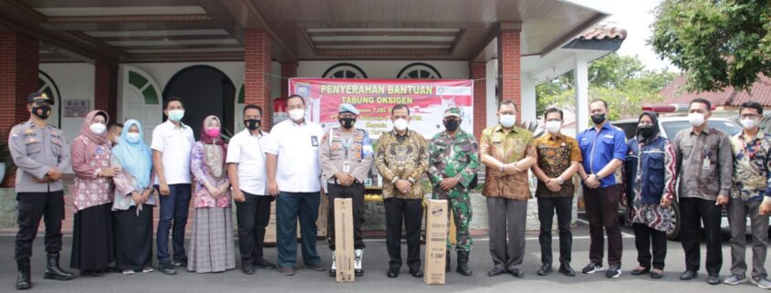 BATURAJA – PT Semen Baturaja (Persero) Tbk help distribute oxygen tubes and mask as one of the Corporate Social Responsibility (CSR) to the Government of District OKU on the home page office of the Regent of OKU (07/10)