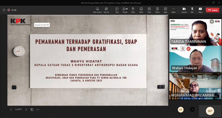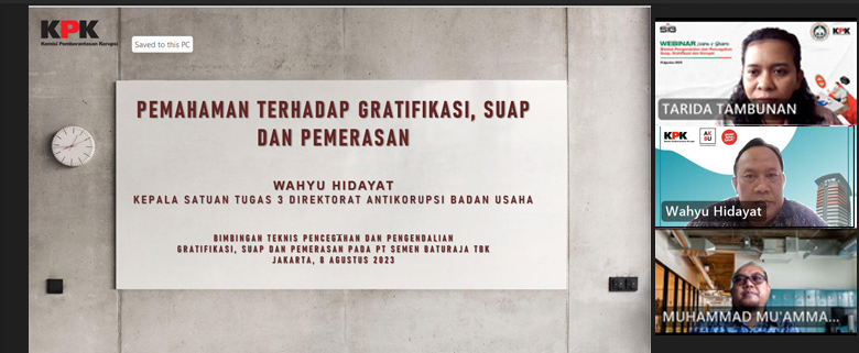 PALEMBANG – PT Semen Baturaja Tbk (SMBR) as a subsidiary of PT Semen Indonesia (Persero) Tbk (SIG) collaborated with the Indonesian Corruption Eradication Commission (KPK) to hold Technical Guidance (Bimtek) Control and Prevention of Gratification, Bribery and Corruption which was held virtually on Tuesday (8/8).