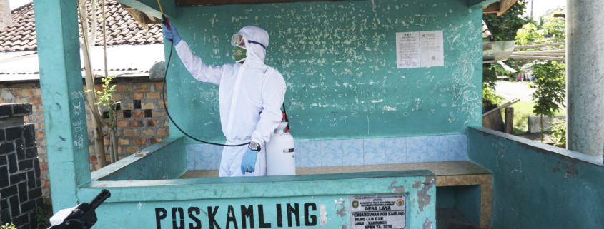 BATURAJA – In the effort to prevent the spreading of Covid-19, Semen Baturaja, through their CSR (Corporate Social Responsibility) Program, has conducted disinfectant spraying for districts and villages situated near Ring I of Baturaja Plant. The CSR program is an act of consideration by SMBR in supporting the government’s attempt to manage the infection of Covid-19 pandemic, especially in the OKU region. The spraying was done on 8 points that include 2 villages and 6 districts, they are: Laya and Pusar village, and the districts of Suka Jadi, Batu Kuning, Saung Naga, Tanjung Agung, Air Gading, and Talang Jawa. The disinfectant spraying has been conducted since 28 May until 3 June 2020 in several public facilities such as: official residences, police department offices, religious institutions, and public schools.