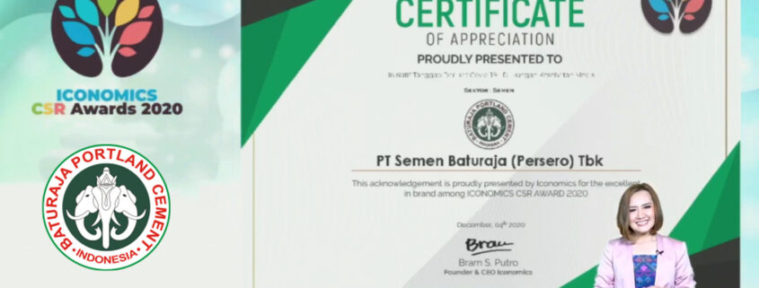 PALEMBANG – Semen Baturaja won an award at the Iconomics CSR Award 2020 with the title “Covid-19 Emergency Response Initiative – Medical Health Support” This event was held virtually on Friday (04/12). Iconomics gives Appreciation to companies that have carried out their Corporate Social Responsibility (CSR) programs.