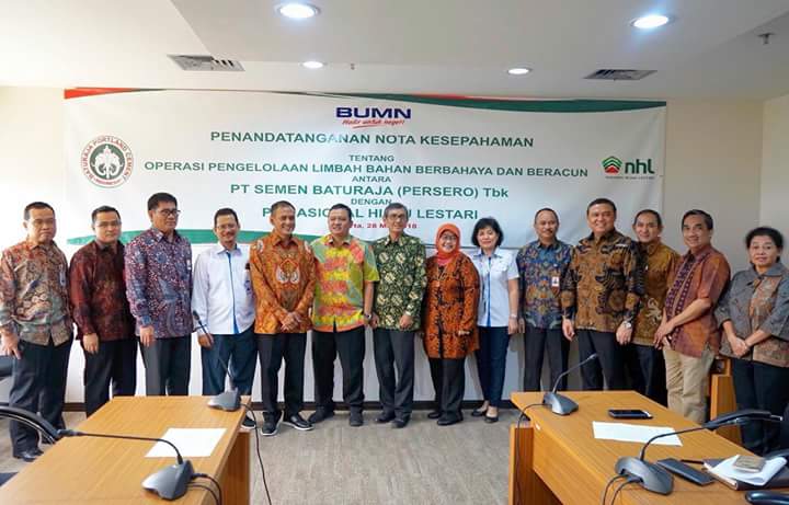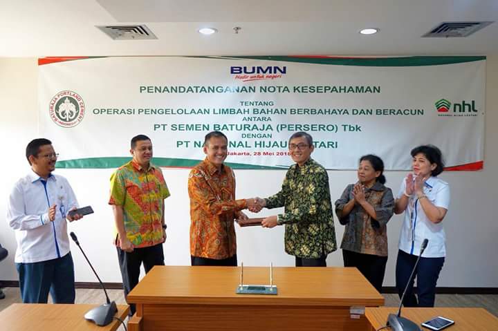 PT Semen Baturaja (Persero) Tbk (SMBR) bekerja sama dengan PT Nasional Hijau Lestari (NHL), sebuah perusahaan yang didirikan Badan Usaha Milik Negara (BUMN) Holding Pertambangan untuk mengelola limbah Bahan Berbahaya dan Beracun (B3). Penandatanganan kesepakatan kerja sama dilakukan langsung oleh Direktur Utama (Dirut) SMBR, Rahmad Pribadi, dengan Pelaksana Tugas (Plt.) Dirut NHL, Agus Yulianto, di Kantor Kementerian BUMN, Jalan Medan Merdeka Selatan, Senin, 28 Mei 2018.
