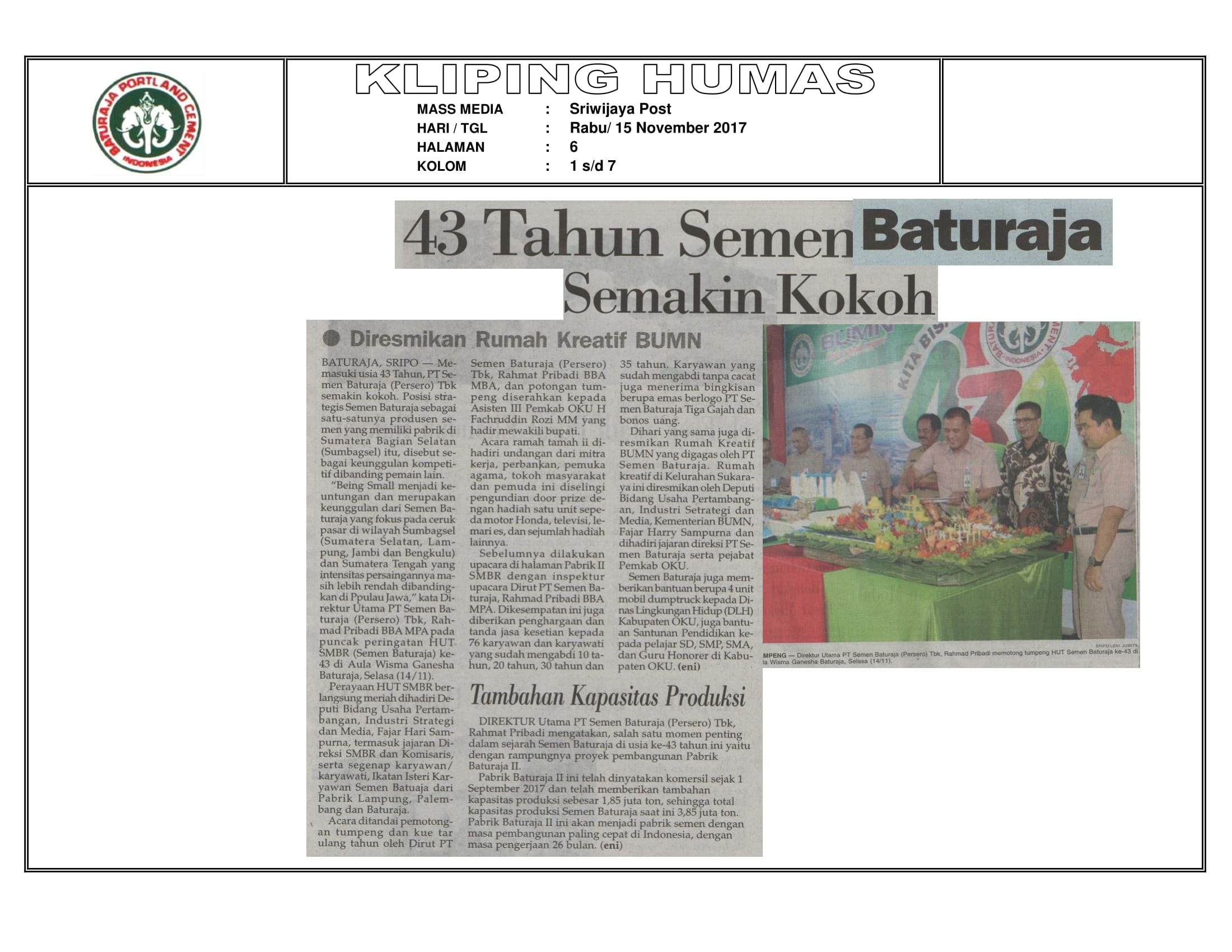 Kliping Media : 43 Tahun Semen Baturaja Semakin Kokoh