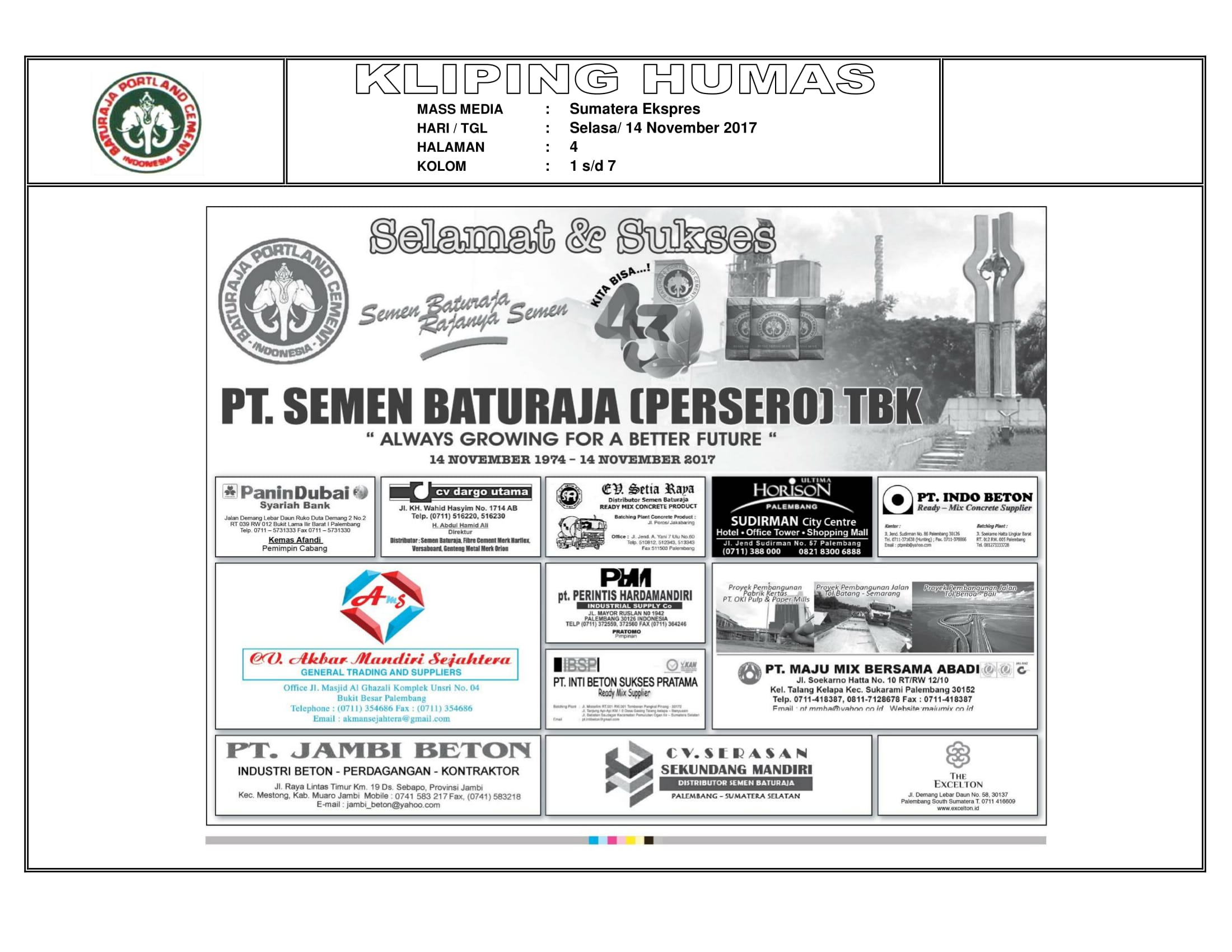 Kliping Media : HUT ke-43 PT Semen Baturaja (Persero) Tbk