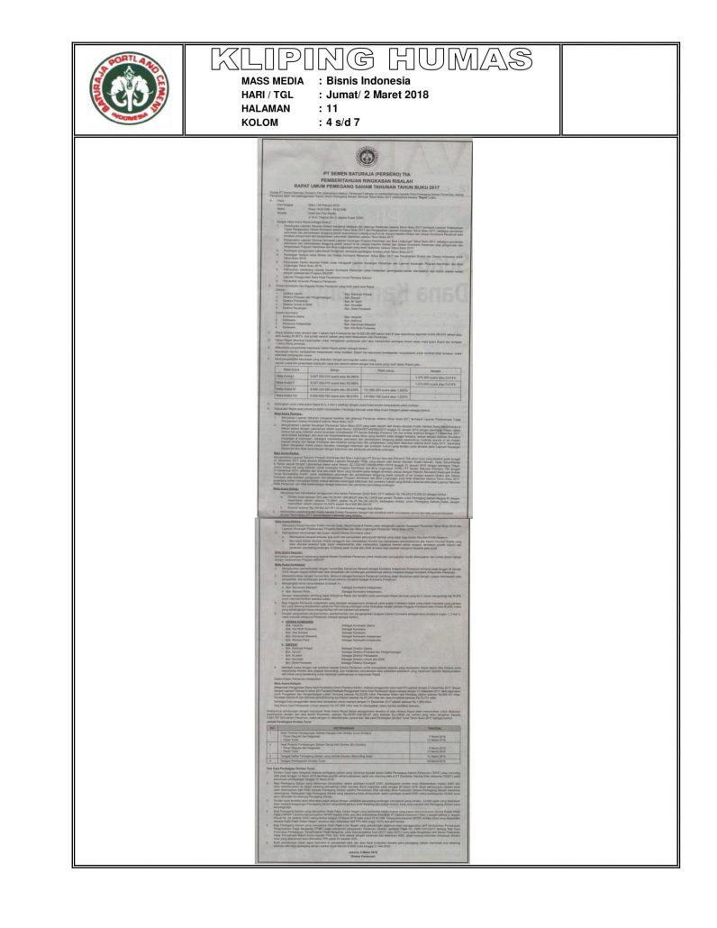 Pemberitahuan Ringkasan Risalah Rapat Umum Pemegang Saham Tahunan Tahun Buku 2017