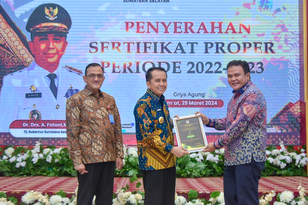 Sertifikat ini diserahkan langsung oleh Gubernur Sumsel Agus Fatoni kepada Direktur (Fungsi Operasi) SMBR Muhammad Syafitri di Griya Agung, Kota Palembang pada Jumat (29/3) dalam acara Penyerahan Sertifikat PROPER 2022 – 2023. Selain itu, SMBR juga menerima Sertifikat PROPER Biru untuk Pabrik Pengantongan Kertapati.