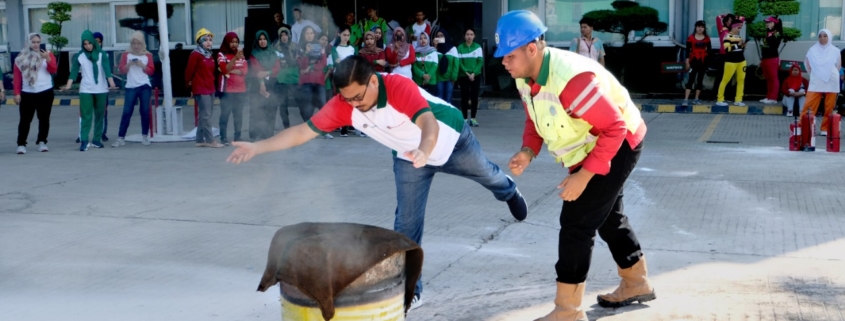 PALEMBANG – Kebakaran besar sering kali bermula dari api kecil. Asal tak panik, kebakaran besar bisa dicegah dengan Alat Pemadam Api Ringan (APAR) dan peralatan yang sudah ada seperti karung goni atau handuk yang sudah dibasahi air. Demikian salah satu trik yang diajarkan dalam kegiatan simulasi cara memadamkan api menggunakan APAR, 12 Juli 2019.