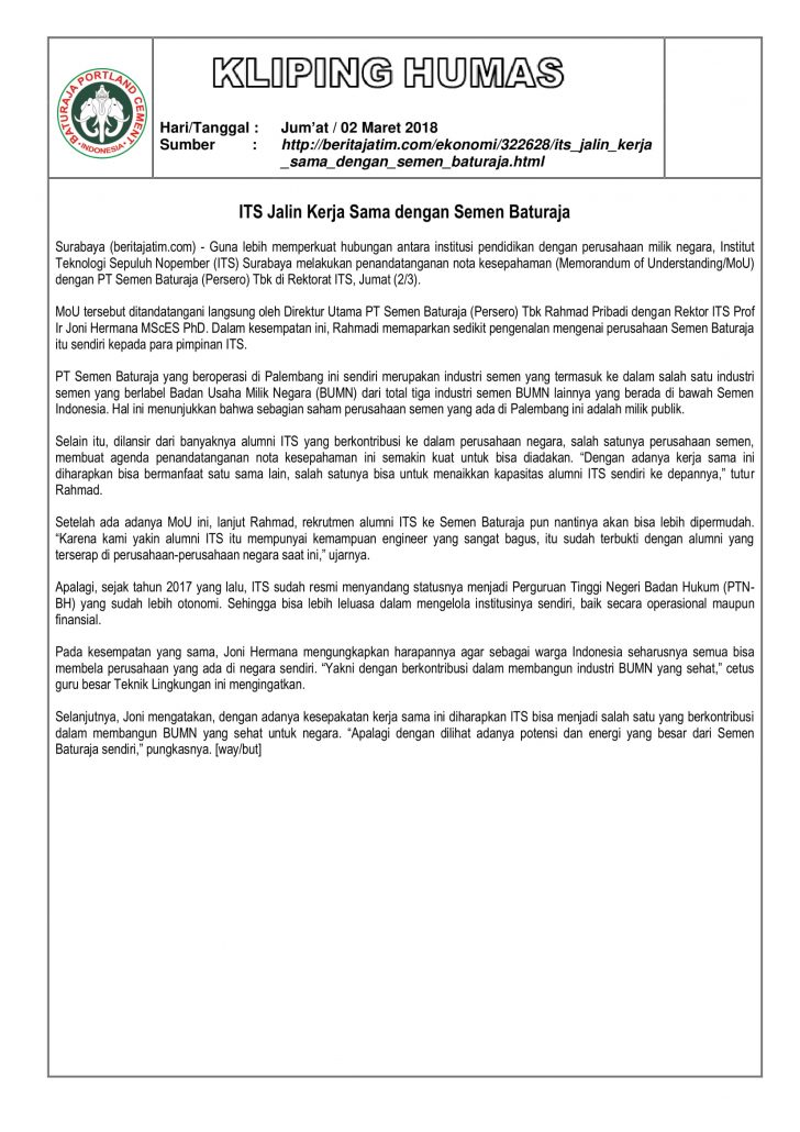 Admin SMBR 2018-05-14 16:19:30 2018-05-14 16:51:05 ITS Jalin Kerjasama Dengan PT Semen Baturaja (Persero) Tbk