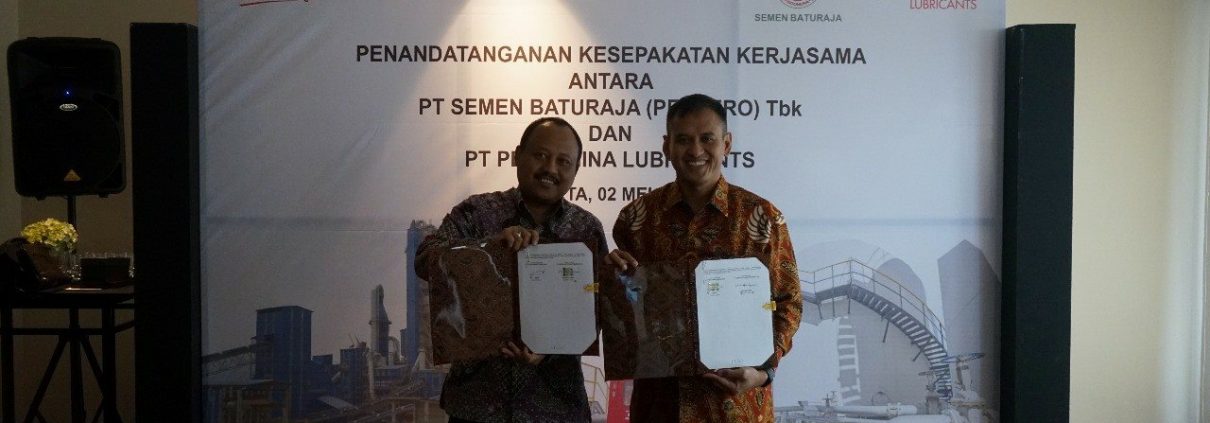 Jakarta – PT Semen Baturaja (Persero) Tbk (SMBR) gandeng salah satu anak perusahaan PT Pertamina (Persero), Pertamina Lubricants untuk meningkatkan kinerja masing-masing perusahaan diantaranya bidang pemasaran, Logistik dan Produk Lubrikasi. Penandatanganan kesepakatan dilakukan langsung oleh Direktur Utama (Dirut) SMBR, Rahmad Pribadi, dan Direktur Utama Pertamina Lubricants, Afandi di Ballroom Hotel Pullman Jakarta, Rabu, 2 Mei 2018.