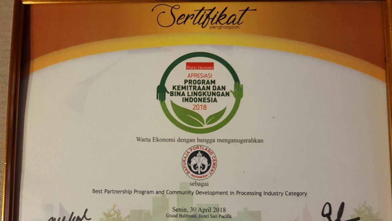 Jakarta – 30 April 2018, Bertempat di Hotel Sari Pan Pasifik telah diselenggarakan malam penganugerahan “Apresiasi Kemitraan & Bina Lingkungan 2018” yang diselenggarakan oleh Warta Ekonomi. Acara ini dihadiri langsung oleh Direktur Umum & SDM PT Semen Baturaja (Persero) Tbk, Bapak Amrullah.