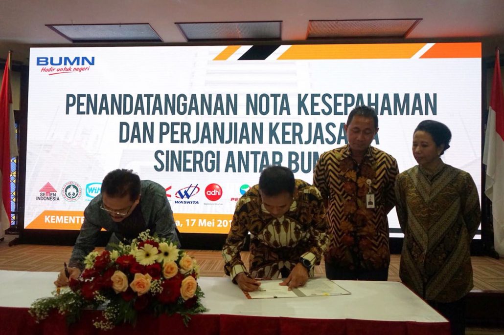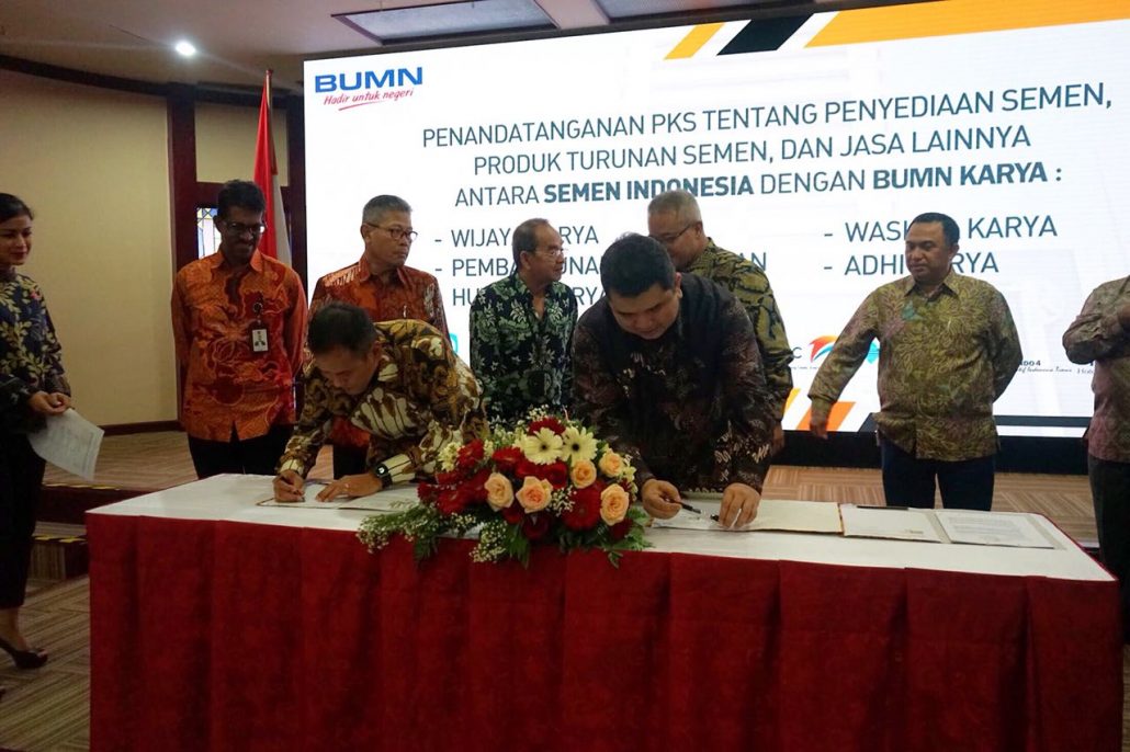 Penandatanganan MoU yang disaksikan langsung Menteri BUMN, Rini M. Soemarno dan Deputi Bidang Energi, Logistik, Kawasan dan Pariwisata (ELKP) Kementerian BUMN, Edwin Hidayat Abdullah. Kelima Dirut BUMN Karya juga hadir untuk menandatangi kesepakatan yaitu Dirut Wijaya Karya, Tumiyana; Dirut Pembangunan Perumahan, Lukman Hidayat; Dirut Hutama Karya, Bintang Perbowo; Dirut Waskita Karya, I Gusti Ngurah Putra dan Dirut Adhi Karya, Budi Harto.